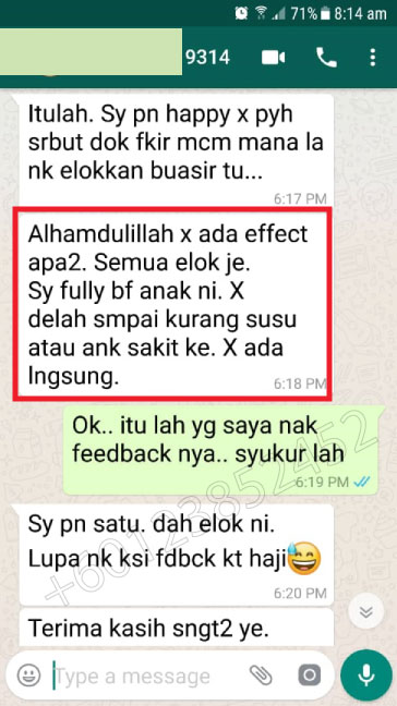 Saya belum menerima kemarahan dari pelanggan lagi setakat ini yang menyatakan setelah ambil ubat ini akan mendapat mudarat seperti dari alami satu saja penyakit akan merebak menjadi dua atau tiga penyakit lain yang baru.