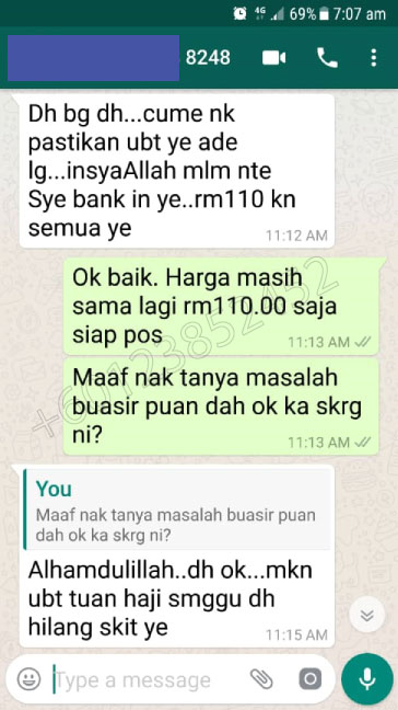 kami menerima permintaan yang agak tinggi dan harap dimaafkan kerana tidak sempat untuk menghubungi anda semula seorang demi seorang. Yang boleh kami bantu disini hanyalah berpandukan detail yang anda berikan dalam borang tersebut sahaja. Oleh itu anda hendaklah berikan setepat yang boleh. Ini menyenang pihak kami untuk tentukan ubat yang sesuai